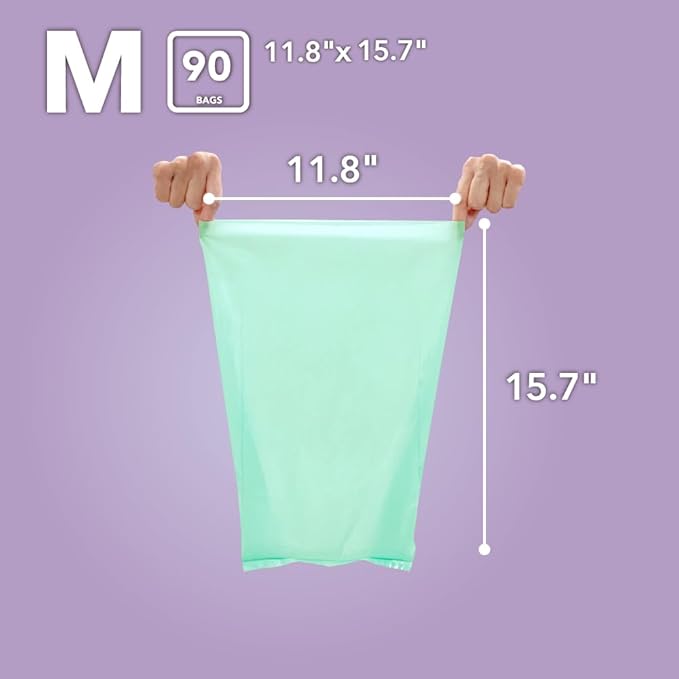 BOS Odor-Sealing Dog Poop Bags for Pet Waste - Disposal Doggy Bags - Scent & Smell Free (90Bags) [Size: M, Color: Light Mint Green] (Pack of 1)