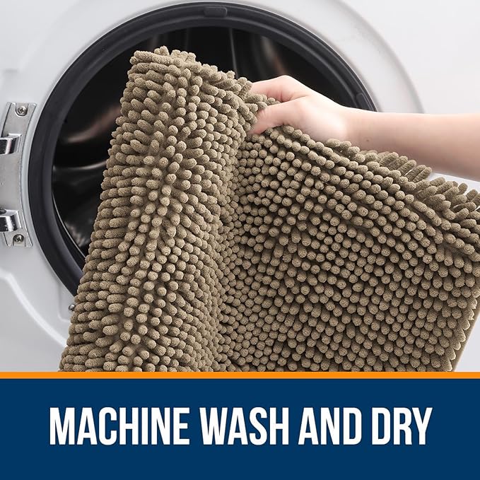 OLANLY Bathroom Rugs 47x24, Extra Soft Absorbent Chenille Bath Rugs, Rubber Backing Quick Dry, Machine Washable Bath Mats for Bathroom Floor, Tub and Shower, Home Decor Accessories, Tan