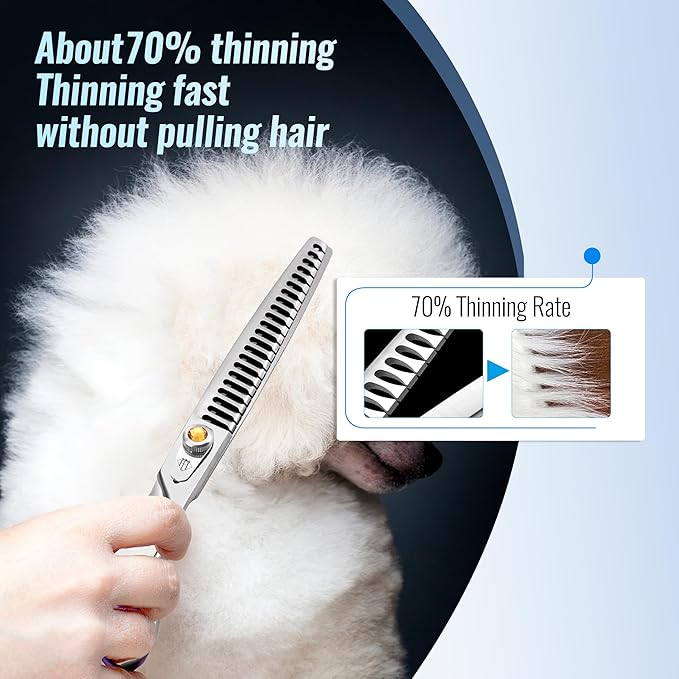 Fenice Professional Dog Grooming Scissors: 7.5 inch Chunker Shears for Dogs Trimming Made Of Japanese 440C Stainless Steel Yellow Diamond
