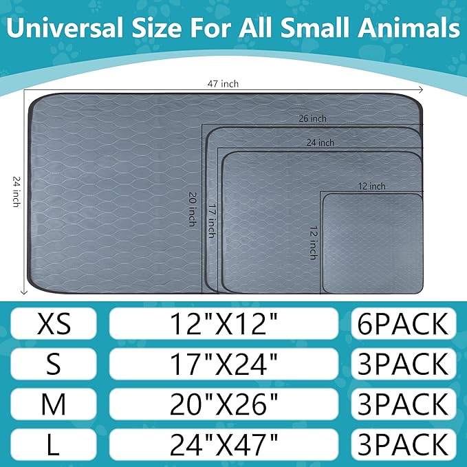 Washable Guinea Pig Cage Liner, 24 x 47 (3 Pack), Waterproof Reusable & Anti Slip Guinea Pig Bedding Fast and Super Absorbent Pee Pad for Small Animals, for Midwest Cage Area