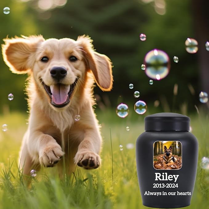 - Dog Urn Personalized: Our solemn pet urns for dogs ashes provide a forever home for your cherished pet. As a classic black pet cremation vessel, it's suitable for most pet ashes, including those of dogs, cats, guinea pigs, and more.