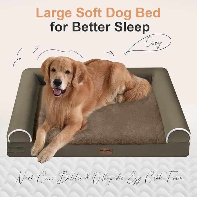 Large Dog Bed Orthopedic Washable: Beds Bolster XL Bed Big XLarge Dogs Memory Foam Couch Sofa Waterproof with Removable Cover - Brown