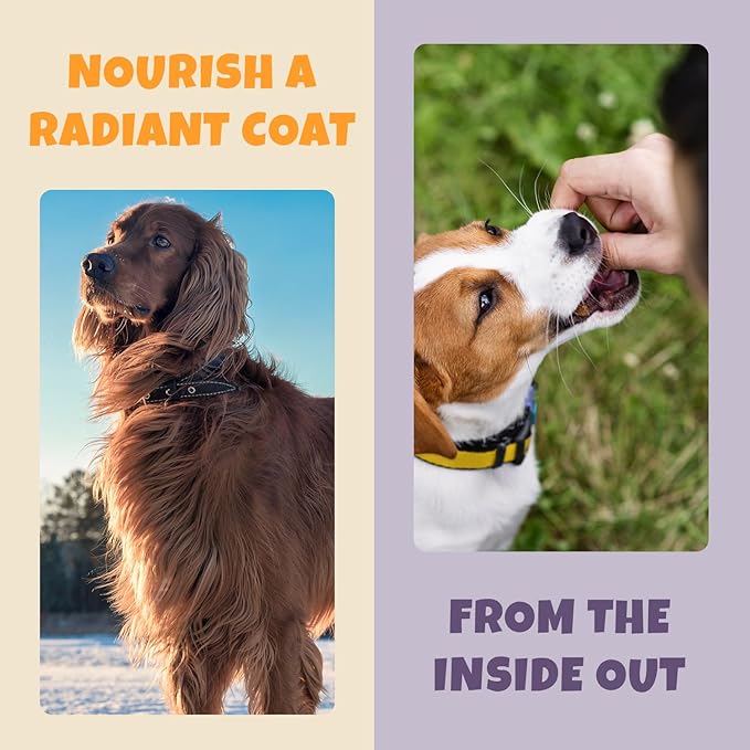 - Say Goodbye to Itching - Omega 3 fatty acids in our supplement chews support your dog’s skin and coat health, leading to a shiny coat and providing your pet relief from dry, itchy, or flaky skin caused by allergies, hot spots, or other conditions.
