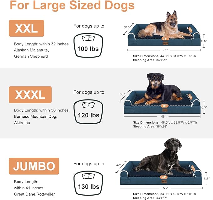 Large Dog Bed Orthopedic Washable: Beds Bolster XL Bed Large Big Dogs Memory Foam Couch Sofa Waterproof with Removable Cover - Navy Blue