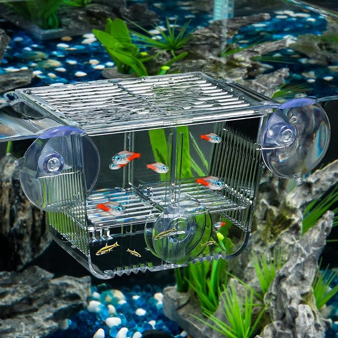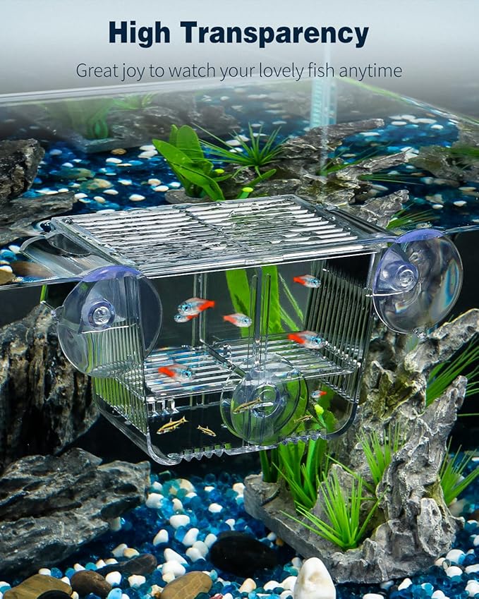 Pawfly Aquarium Breeding Box, Acrylic Fish Isolation Box with 6 Suction Cups, Aquarium Acclimation Hatchery Incubator for Baby Shrimp Betta Aggressive Fish Guppy (Small)