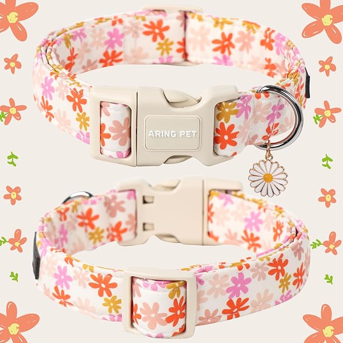 ARING PET Summer Dog Collar-Cute Dog Collars for Small Dogs, Adjustable Cotton Sunflower Pet Collars Puppy Collar for Small Medium Large Dogs