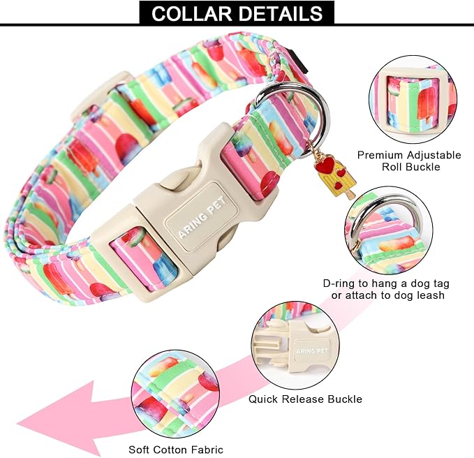 ARING PET Summer Dog Collar - Cute Popsicle Design, Adjustable Multicolor Ice Cream Collar for Small, Medium, Large Dogs