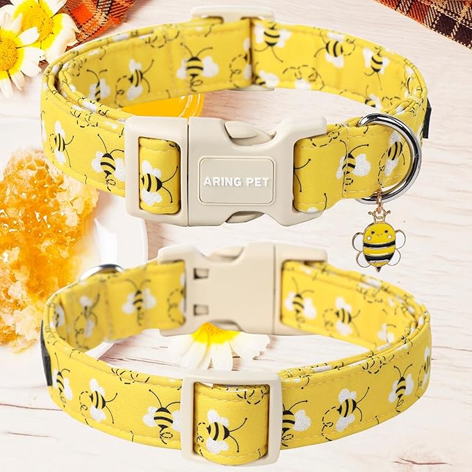 ARING PET Bees Dog Collar, Cute Spring Summer Yellow Bee Pet Collars for Puppy Small Medium Large Boy Girl Dogs-L
