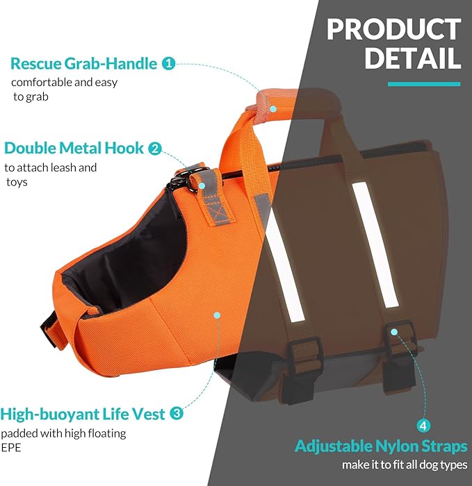 About This HIGH FLOATING DOG SWIMMING VEST - This ripstop dog life jackets is made of high-density Oxford material and... Read more