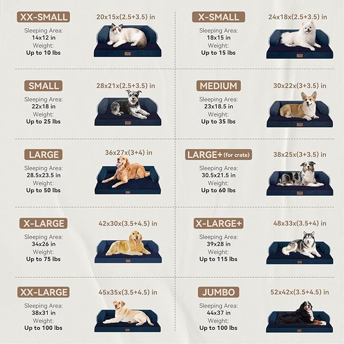 About This 【Size Guide】 The navy blue X large size dog bed (42x30x8 inches) is suitable for dogs weighing less... Read more