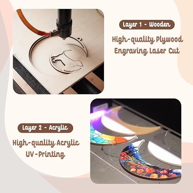 - High Quality: Crafted from eco-friendly wood and high-quality acrylic, this 6-inch diameter, 7mm thick suncatcher combines durability with elegant design. The crisp and clear printed acrylic allows sunlight to penetrate from both sides, providing a captivating display of vibrant colors and patterns that will illuminate and enliven any space.