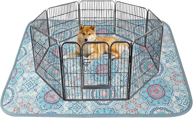 IEUUMLER Washable Pee Pads for Dogs, 1 Pack Non-Slip & Waterproof Pack Whelping Pad, Reusable Washable Puppy Potty Training Pad with Fast Absorbent for Playpen EU007 (Green Medallion, 48"X48"-1pcs)