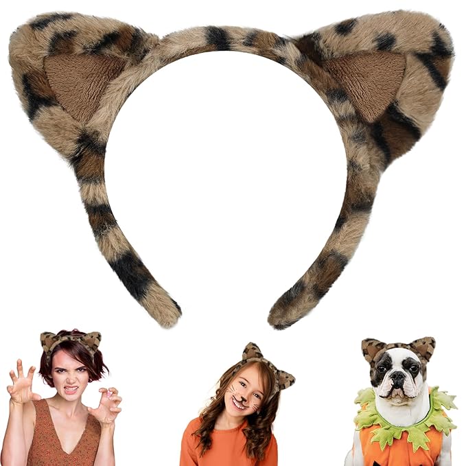 Beviliu Leopard Ears Headband Fluffy, Cheetah Print Cat Hairband for Women, Fuzzy Cheetah Ears Costume for Birthday Party Halloween Christmas Washing Makeup Cosplay
