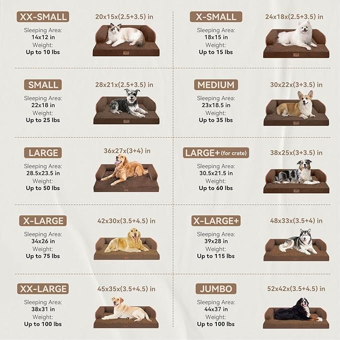 Large Dog Bed Orthopedic Washable - Memory Foam Couch Sofa - XXL Large Big Dogs - Beds Bolster Pet - Waterproof with Removable Cover - Coffee Dog Bed
