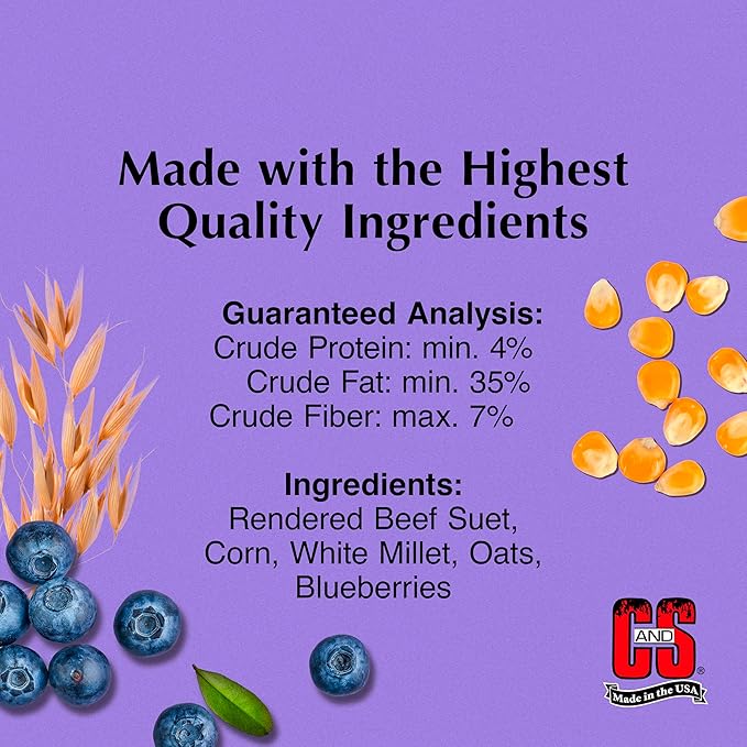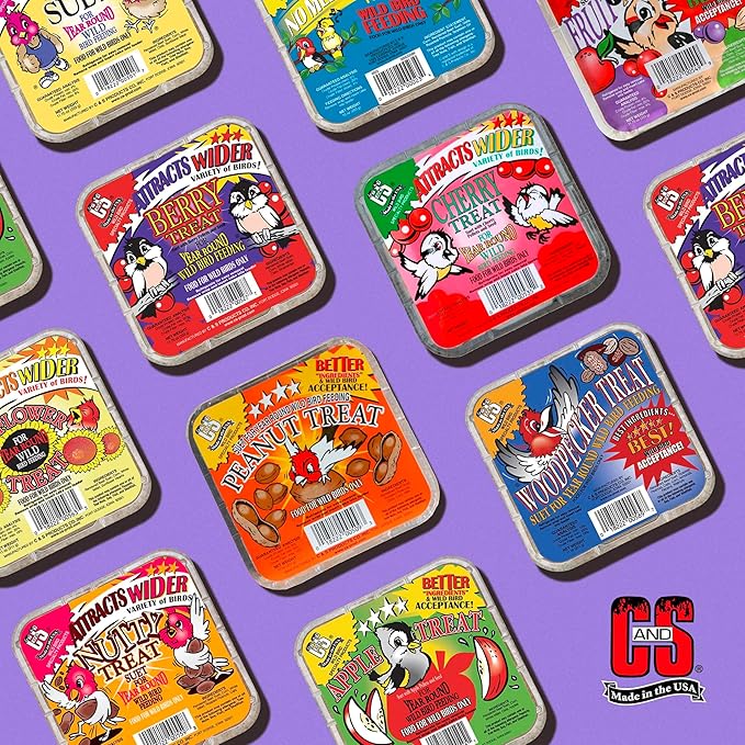 C&S Berry Suet Treat, Wild Bird Food for Robins, Blue Jays, Bluebirds, Tanagers, Thrushes and More, 8 Pack