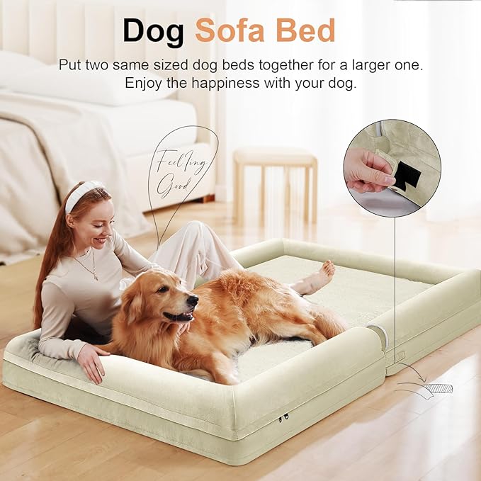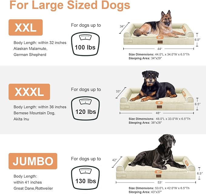 Large Dog Bed Orthopedic Washable: Beds Bolster XXL Bed Big XLarge Dogs Egg Crate Foam Sofa Couch Waterproof Removable Cover - Beige