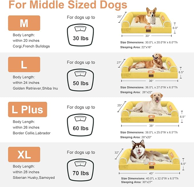 Large Dog Bed Orthopedic Washable: Beds Bolster XL Bed Medium Large Dogs Egg Crate Foam Couch Sofa Waterproof with Removable Cover - Ginger