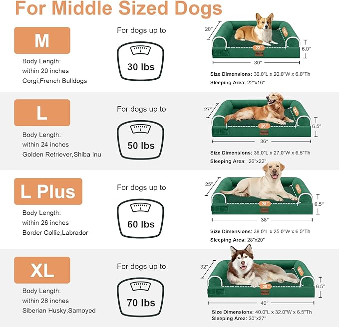 Large Dog Bed Orthopedic Washable: Beds Bolster XL Bed Big XLarge Dogs Egg Crate Foam Couch Sofa Waterproof with Removable Cover - Emerald