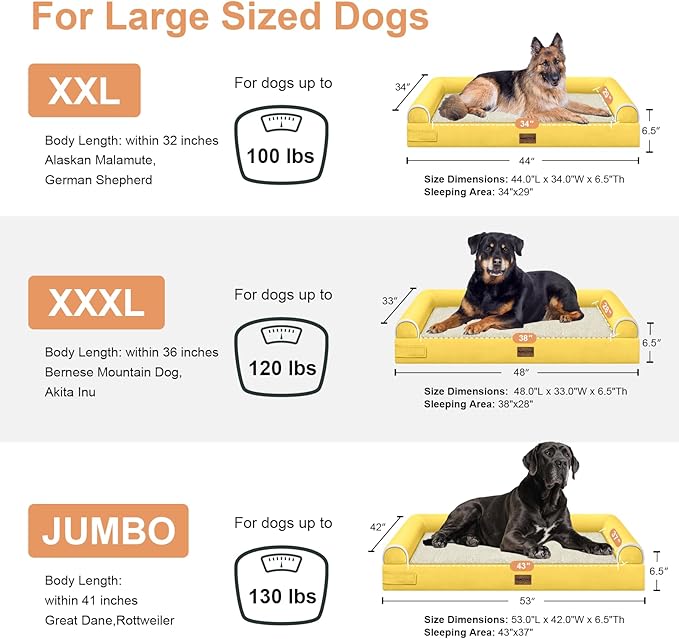 Large Dog Bed Orthopedic Washable: Beds Bolster XXL Bed Big XLarge Dogs Egg Crate Foam Sofa Couch Waterproof Removable Cover - Ginger