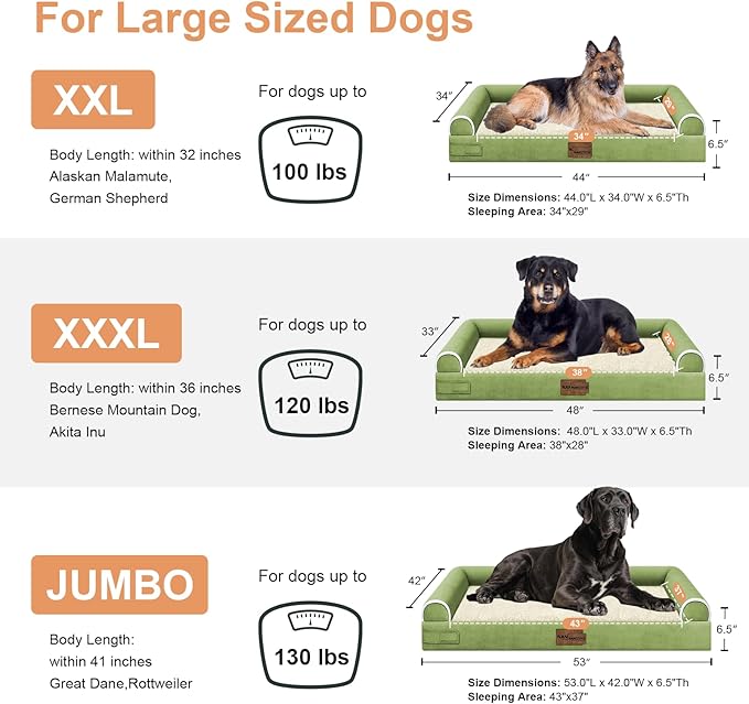 Large Dog Bed Orthopedic Washable: Beds Bolster XXL Bed Big XLarge Dogs Egg Crate Foam Sofa Couch Waterproof Removable Cover - Grass Green