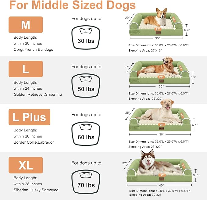 Large Dog Bed Orthopedic Washable: Beds Bolster XL Bed Medium Large Dogs Egg Crate Foam Couch Sofa Waterproof with Removable Cover - Grass Green