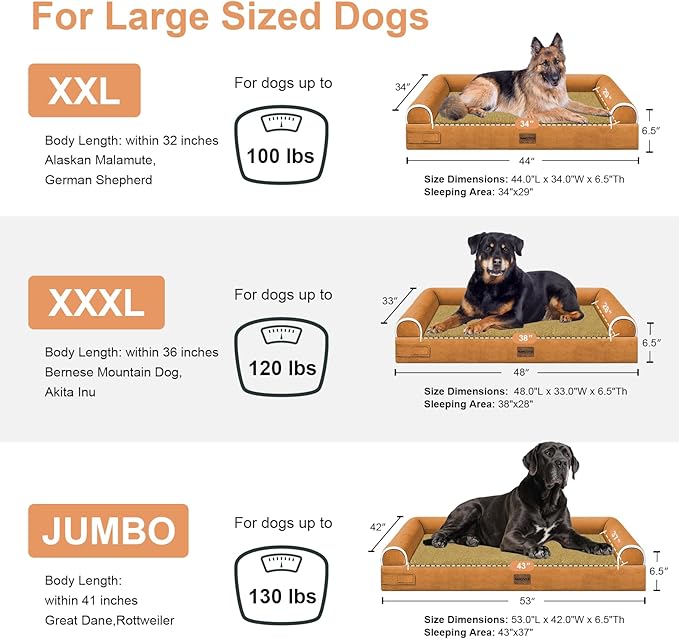 Large Dog Bed Orthopedic Washable: Beds Bolster XXL Bed Big XLarge Dogs Egg Crate Foam Sofa Couch Waterproof Removable Cover - Orange