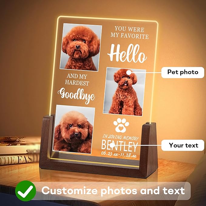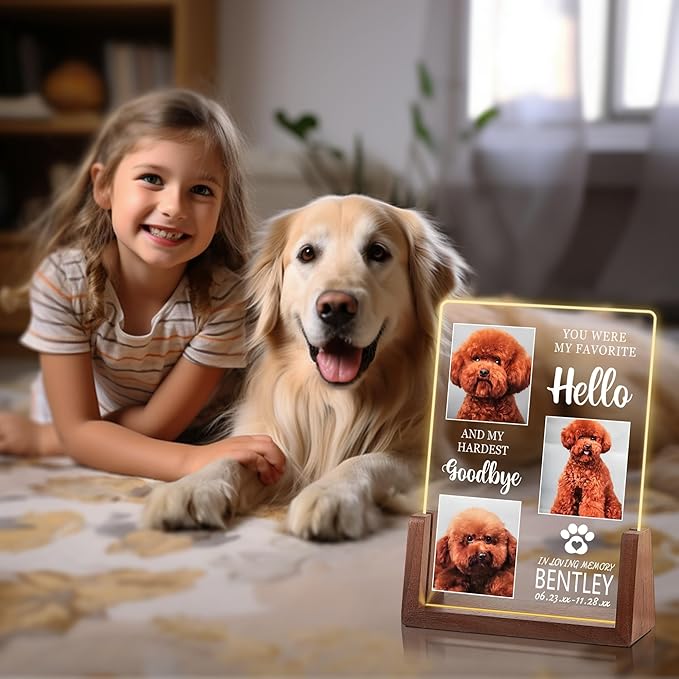 - Dog Memorial Gifts for Loss of Dog: Crafted with care, our pet memorial acrylic night light serve as enduring tributes to your cherished pet. Each night light is meticulously designed to withstand the elements, ensuring a lasting memorial for your furry friend.
