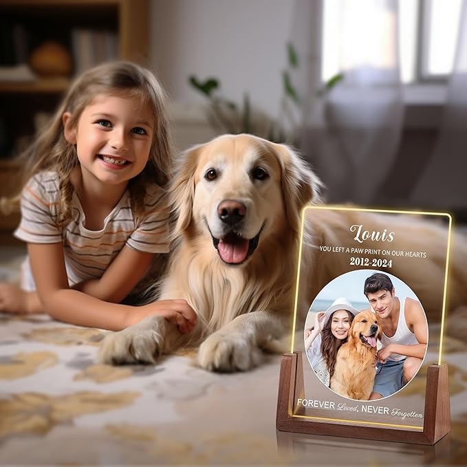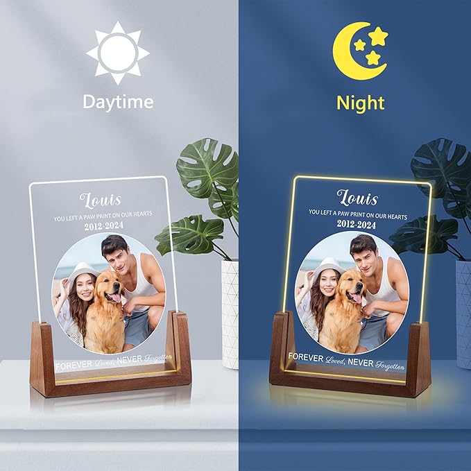 - Dog Memorial Gifts for Loss of Dog: Crafted with care, our pet memorial acrylic night light serve as enduring tributes to your cherished pet. Each night light is meticulously designed to withstand the elements, ensuring a lasting memorial for your furry friend.