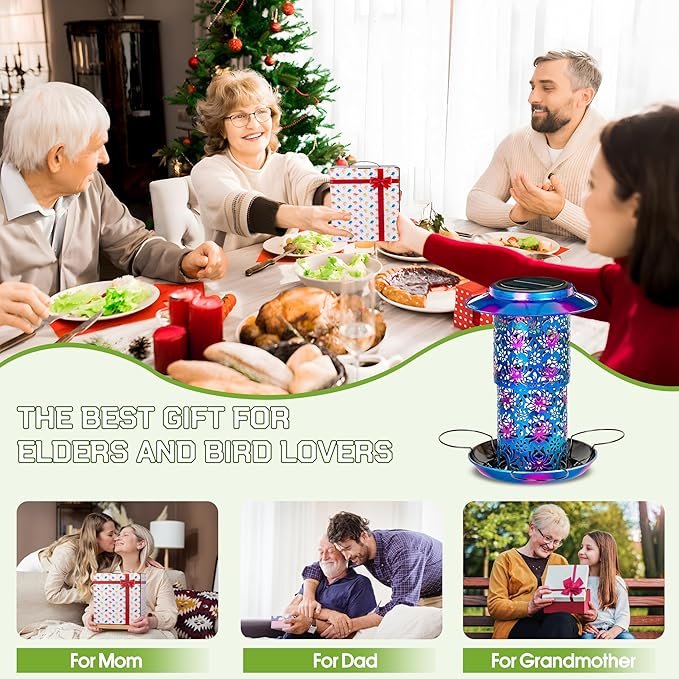 XDW-GIFTS Bird Feeder for Outdoors Solar Hanging Bird Feeder Bird House with Cardinal Feeder Large Capacity Metal Wild Bird Feeder for Garden Decor Unique Gifts & Patio Decor (Blue, 10.5 INCH)