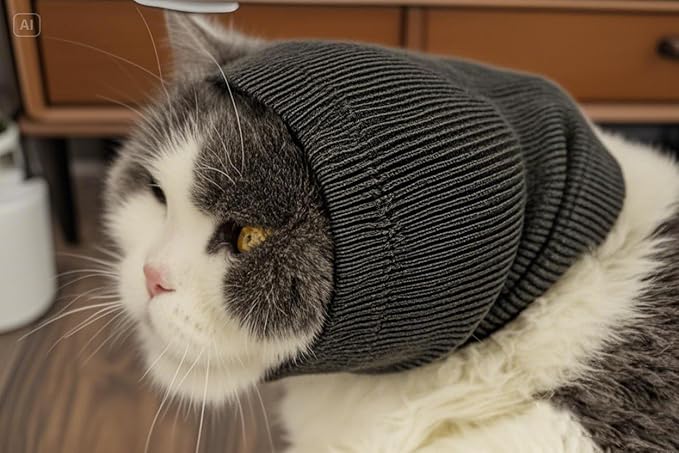 Cat Hematoma Ear Wrap, Pinpoint Mesh Anxiety Relief, Cat Bath Accessories for pet Grooming & Force Drying (Grey S)