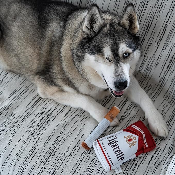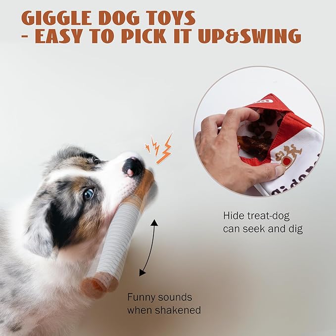 Nocciola 3 Packs Giggle Puff Stick Toys with a Box, Funny Interactive Giggle Sound Plush Dog Toys, Pitbull Husky Frenchie No Stuffing Puppy Toys for Small to Medium Breed, Dog Accessories Boy Gift