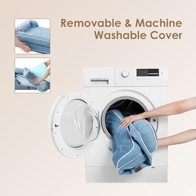 EHEYCIGA Orthopedic XL Dog Beds, Waterproof Memory Foam Dog Bed for Extra Large Dogs, Non-Slip Bottom and Egg-Crate Foam Big Pet Couch Bed with Washable Removable Cover, Washed Blue