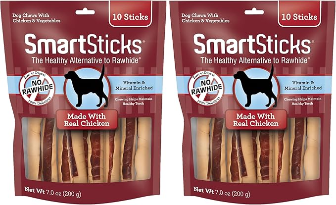 SmartBones SmartSticks, Treat Your Dog to a Rawhide-Free Chew Made with Real Chicken and Vegetables,10 Sticks (Pack of 2)