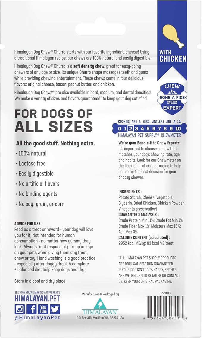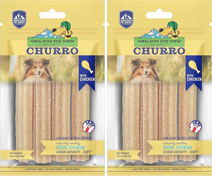 Himalayan Dog Chew Churro Yak Cheese Dog Chews, 100% Natural, Long Lasting, Gluten Free, Healthy & Safe Dog Treats, Lactose & Grain Free, Protein Rich, for All Breeds, Soft, Real Chicken Flavor, 4 oz