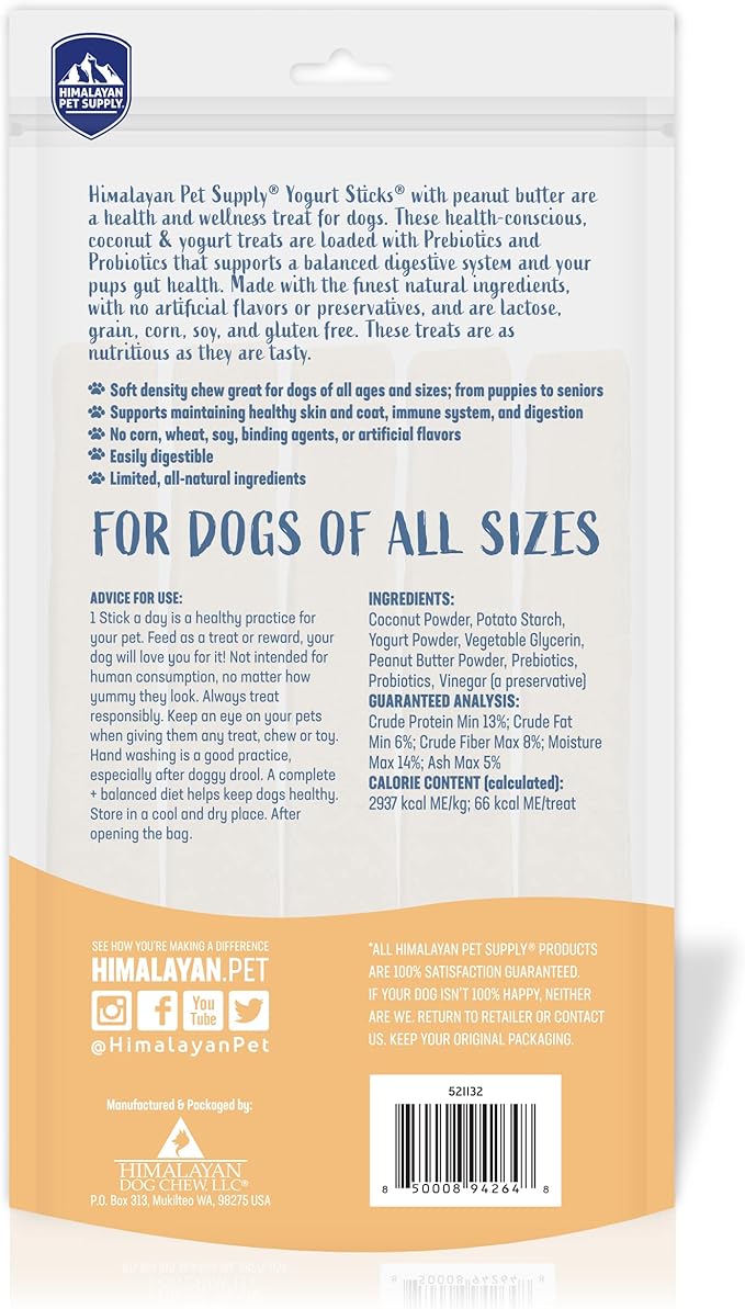 Yogurt Sticks, Prebiotic & Probiotics, Protein Rich - Lactose Free - Gluten Free - Corn Free - Grain Free, USA Made, for All Breeds, 5 pieces of Droolicious Yogurt Sticks, Peanut Butter Flavor