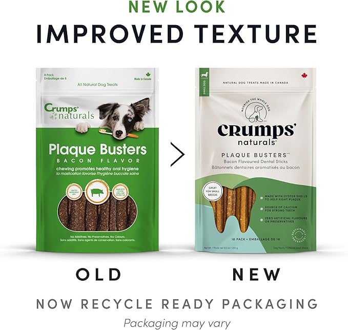 Crumps' Naturals Pbb- Bacon Dental Dog Treats (36 Pack), 4.5"