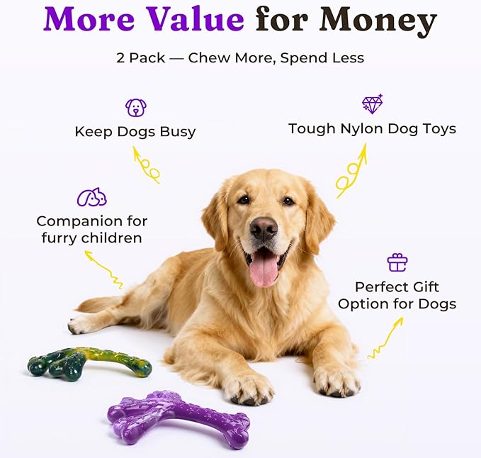 Dog Toys for Aggressive Chewers - 2 Pack Beef Bacon Flavor Tough Dogs Chew Toys, Indestructible Toy for Medium Large Dogs Gift