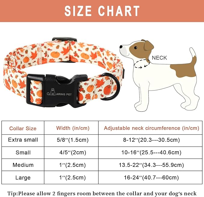 ARING PET Fall Dog Collars, Cute Autumn Pumpkin Maple Leaves Pet Collar with Quick Release Buckle for Small Medium Large Girl Boy Dogs-S