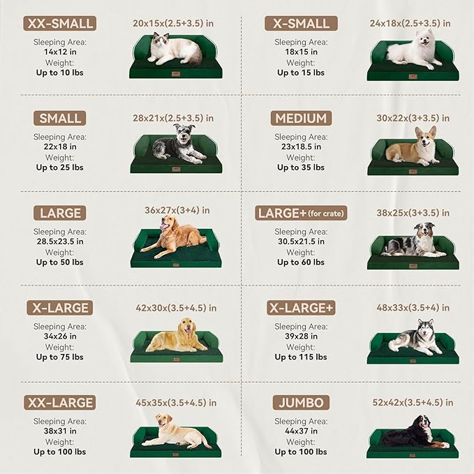 Large Dog Bed Orthopedic Washable - Waterproof Removable Cover - Medium XLarge Big Dogs - Egg Foam Couch - Emerald Dog Beds Bolster with Sides