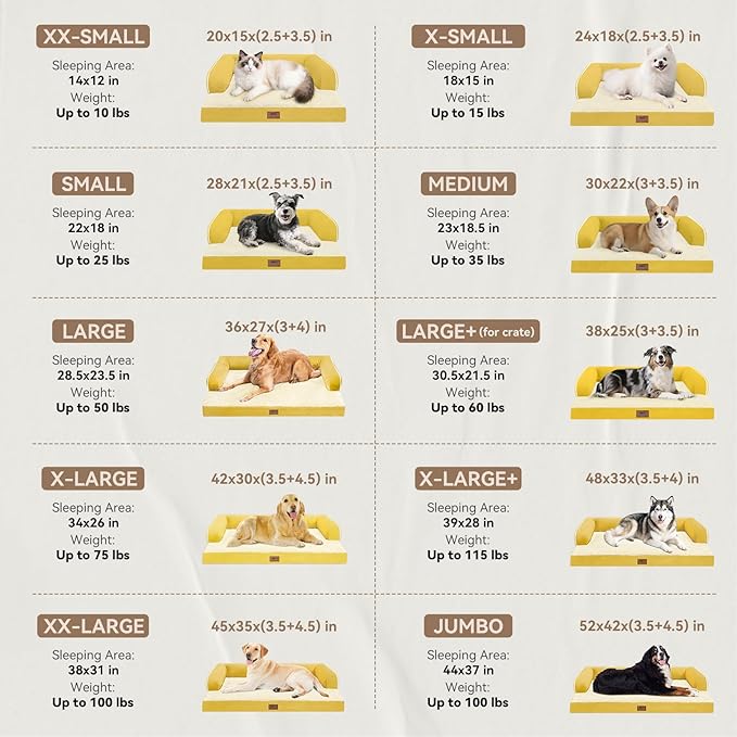 Large Dog Bed Orthopedic Washable - Waterproof with Removable Cover - Memory Foam - Beds Bolster Pet - Couch Sofa - XXXL Large Big Jumbo Dogs - Ginger Yellow Giant Dog Bed