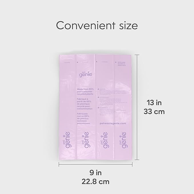- TRUSTED PET WASTE MANAGEMENT - Part of the respected Genie family of products, these scented poop bags continue our legacy of quality pet care solutions. Our commitment to excellence ensures you get the same reliable performance you've come to expect from our trusted brand of dog waste bags.