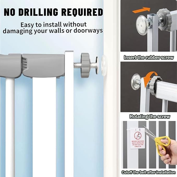 41" Tall Safety Pet Gate,Adjustable 29.92"-57.48" Wide,No Drilling Pressure Mount Kit,Auto Close Cat Gate Suitable for Stairs,Doorways,White (29.92"-57.48" W)