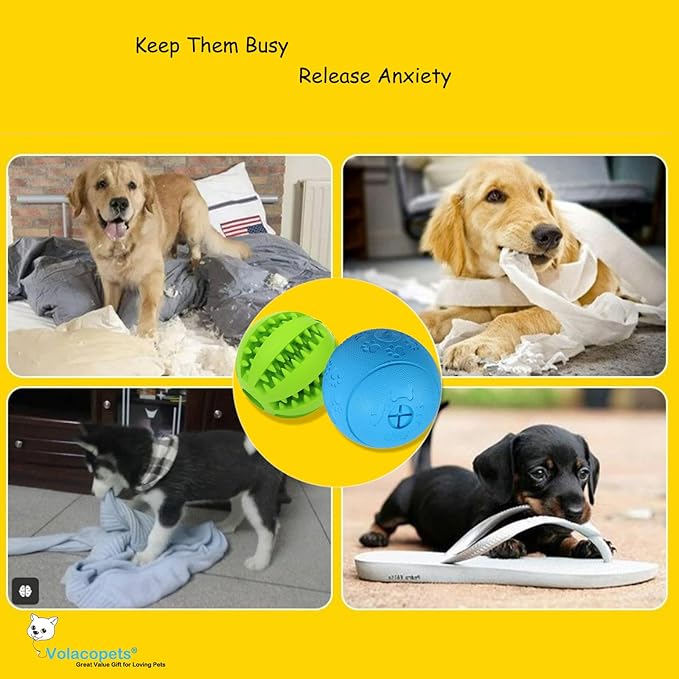 Dog Puzzle Toy, Treat and Dental Balls, Interactive Treat Dispensing Toy for Dogs, Durable Puppy Toys for Teething Small Dogs, Rubber Teeth Balls, Slow Feeder,2 Pack (Small)