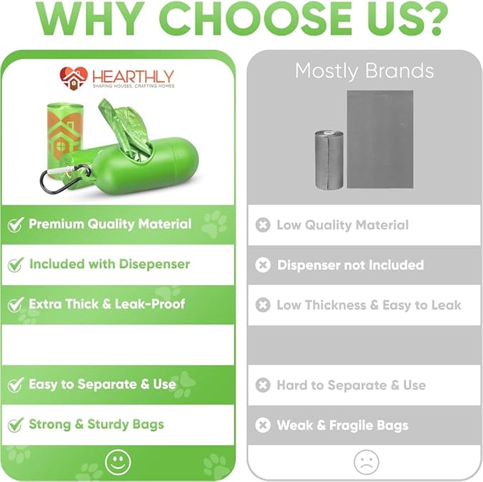 - EXTRA THICK MATERIAL: Poop bags for dogs provide superior strength and durability. Our extra-thick doggie poop bags are designed to resist tearing and punctures, even with larger waste loads. Confidently handle any cleanup without worrying about breaks or spills, making dog walks more enjoyable and stress-free.