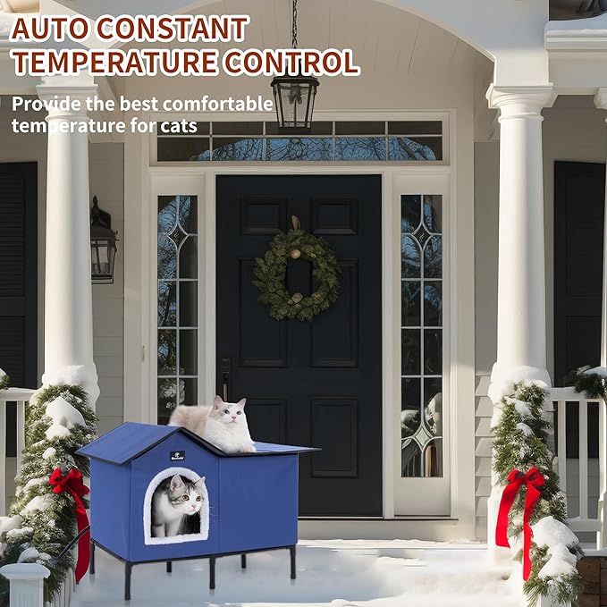MARUNDA Heated Cat Houses for Outdoor Cats in Winter, Heated cat House for Indoor and Kitty Shelter for Your Pet to Stay Warm and Cozy,Easy to Assemble. (Dark Blue, Large)