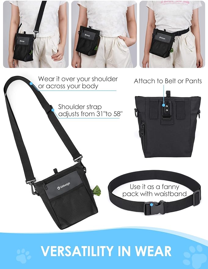 Gobeigo Dog Treat Pouch with Silicone Snack Bag, Front Pocket fits All Phones, 4 Cup Treat Bag with Training Clicker, Upgrade Stronger Magnetic Closure, 3 Ways to Wear Walking Fanny Pack (Gray)