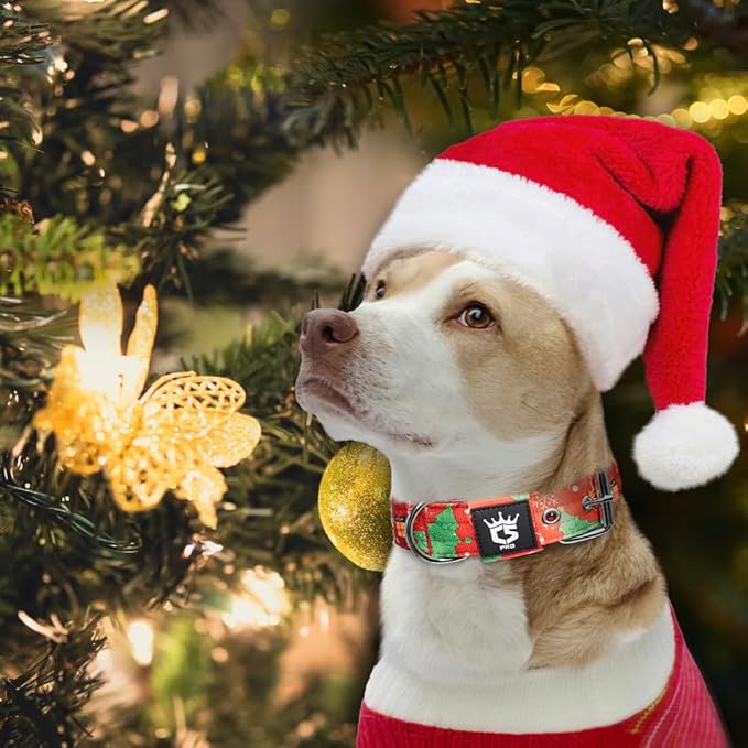 TSPRO Tactical Dog Collar 1.25 Inch Wide Thick Dog Collars with Heavy Duty Metal Buckle, Durable, Strong, Adjustable for Small Dogs (Christmas Green S)