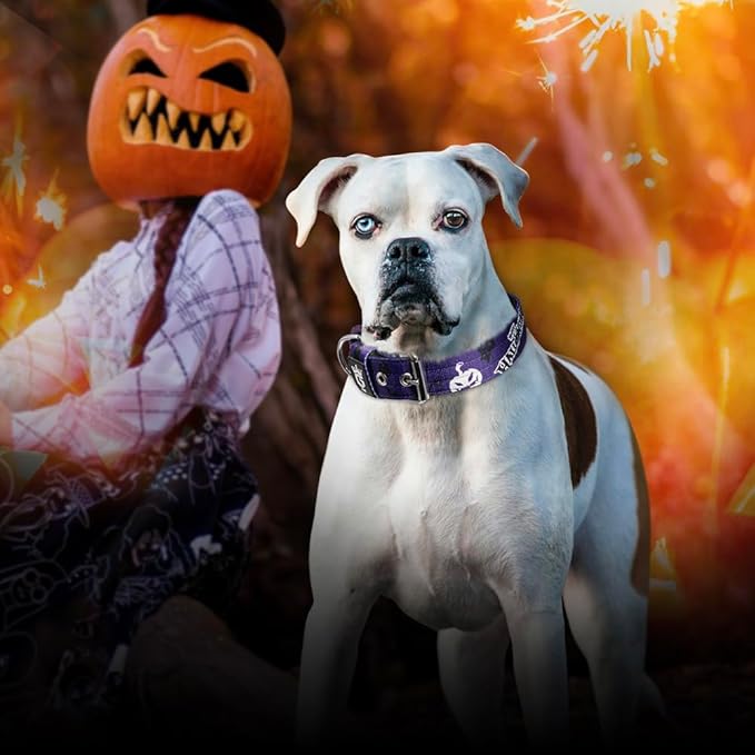 - Durable Comfortable Material. The polyester of this halloween dog collar is thick, tough yet comfortable,and the soft padded lining provides a comfortable wearing and avoid your dog from rubbing against the skin. When you receive and feel the big dog collars you will know that it was made with quality and care