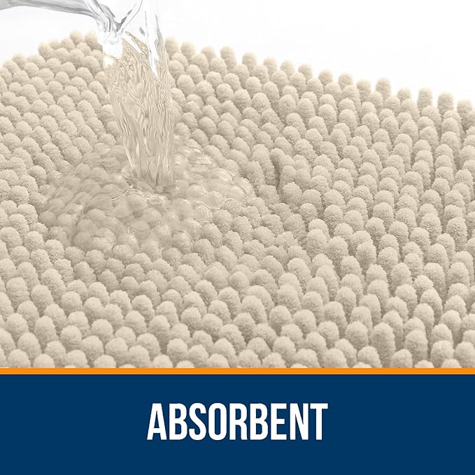 OLANLY Bathroom Rugs 44x24, Extra Soft Absorbent Chenille Bath Rugs, Rubber Backing Quick Dry, Machine Washable Bath Mats for Bathroom Floor, Tub and Shower, Home Decor Accessories, Sand