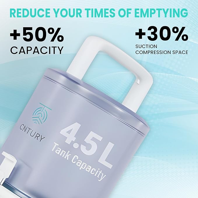 - 【 Large 4.5L Capacity for Less Emptying 】CNTURY dog hair vacuum features a spacious 4.5L dust cup, perfect for pet hair vacuum cleaning at home. Groom multiple pets without frequent emptying—just press one button for quick disposal, keeping your space tidy and fur-free.